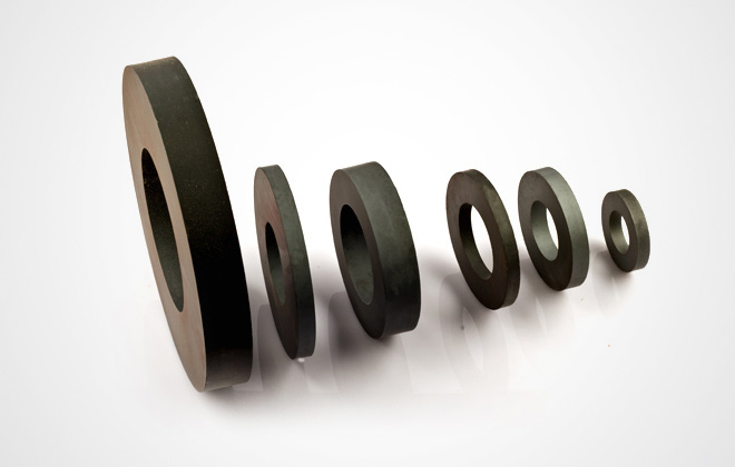 鐵氧體磁鐵主要是以SrO以及Fe2O3為主要原料,通過(guò)陶瓷燒結(jié)工藝制作而成。該種磁鐵防腐性能很好,不必進(jìn)行表面電鍍處理。產(chǎn)品形狀可以制作成圓環(huán)形、圓柱形、方塊形和瓦片形。